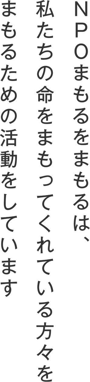 そうした、命をまもってくれている人をみんなでまもる持続可能な社会を実現させるために新しいしくみをデザインしていきます。
